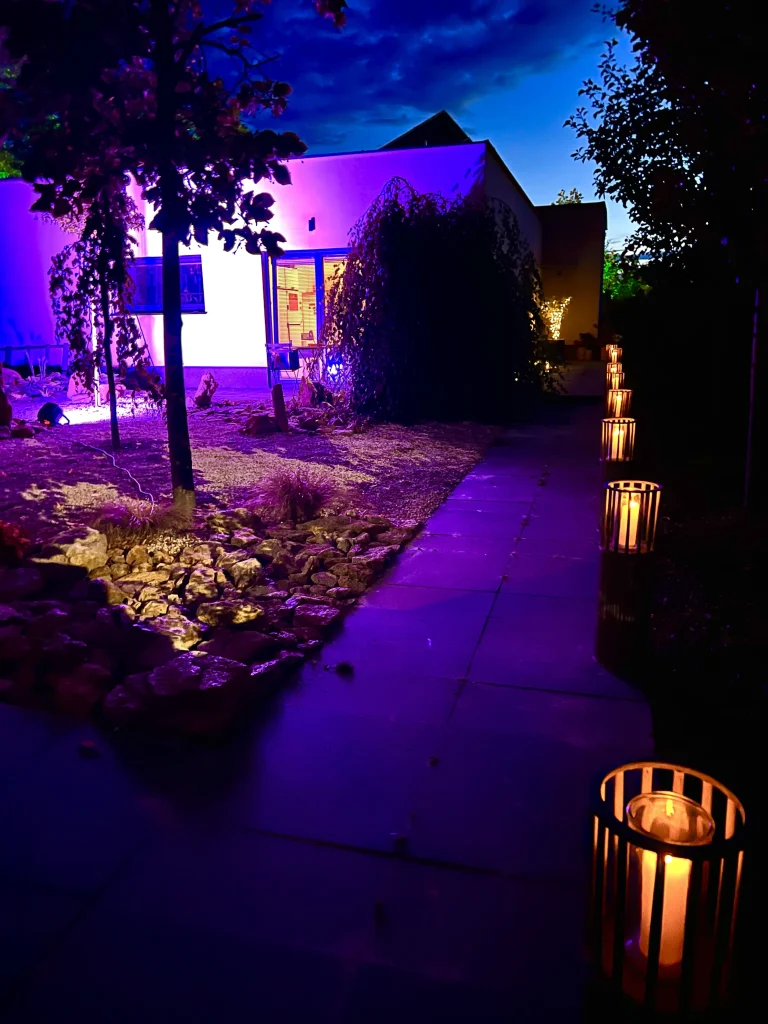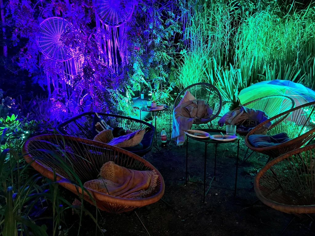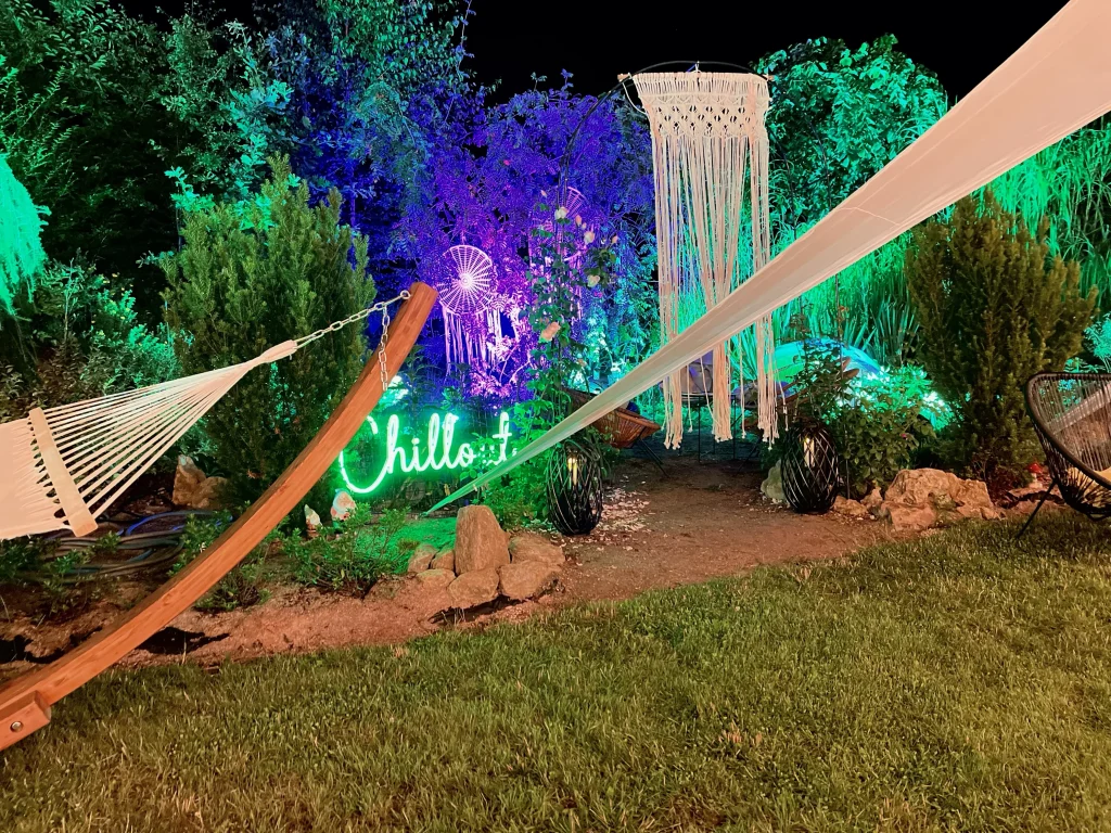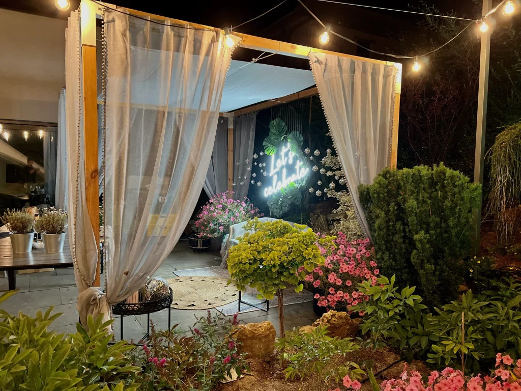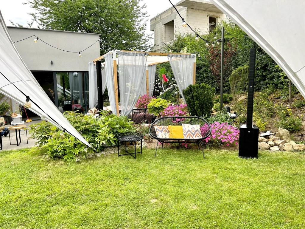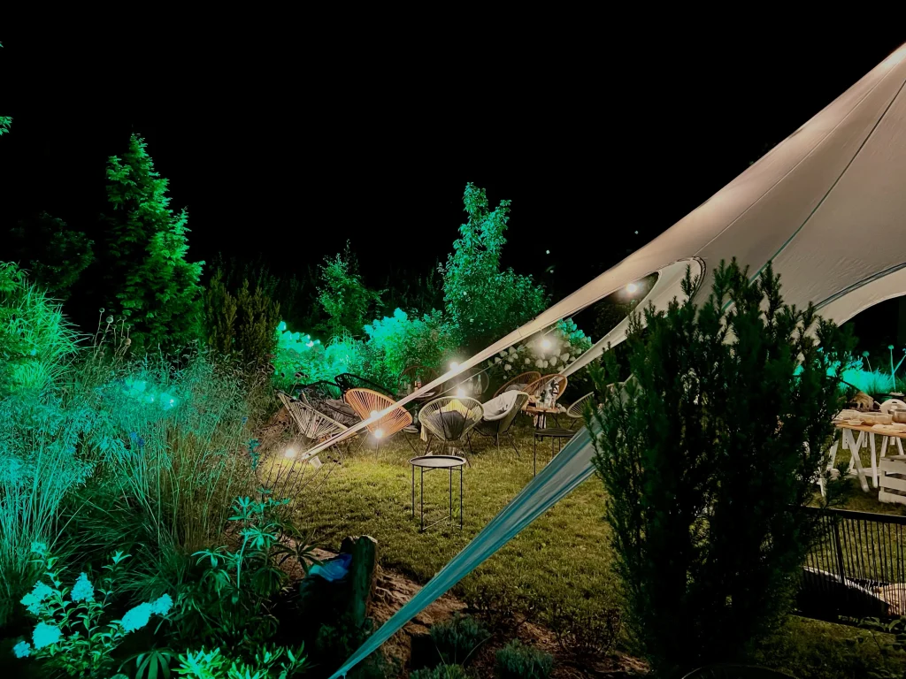 - Girlandy świetlne: Oświetliły ogród po zmroku, tworząc romantyczną atmosferę.