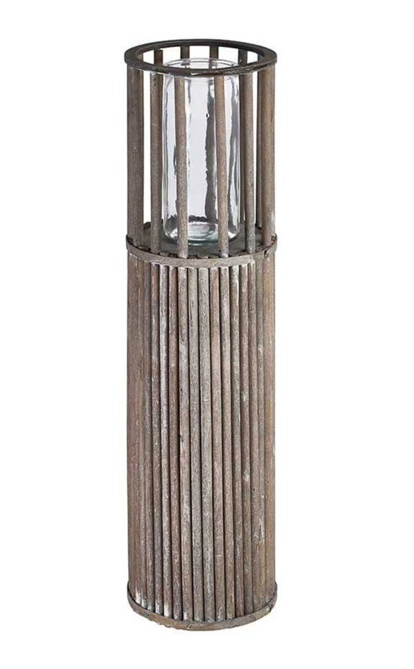 Cudownie uzupełni aranżacje w każdym ogrodzie, tarasie czy balkonie, efekt postarzenia współgra z wystrojem w przestrzeniach boho lub eko. Wysoki, drewniany, kolumnowy lampion idealnie rozświetli alejkę czy schody. Wysoki wkład na świecę, wykonany ze szkła, gwarantuje bezpieczeństwo podczas jej palenia się.
