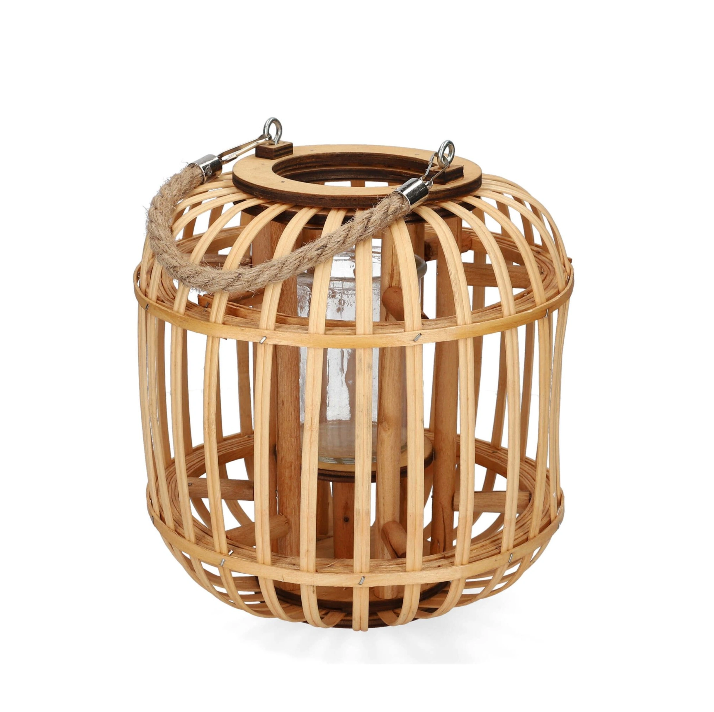 Cudownie uzupełni aranżacje w każdym domu, ogrodzie, tarasie czy balkonie, współgra z wystrojem w przestrzeniach boho lub eko. Pleciony, bambusowy koszyk lampionu ma naturalny kolor drewna, a mocny, pleciony uchwyt pozwoli powiesić lampion. Wysoki wkład na świecę, wykonany ze szkła, gwarantuje bezpieczeństwo podczas jej palenia się.