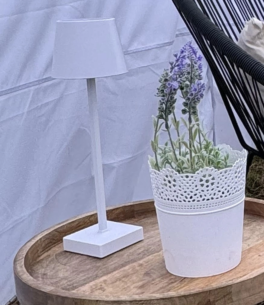 Dekoracyjna stołowa lampka w białym kolorze, wykonana ze stali i tworzywa sztucznego stworzy niepowtarzalny klimat w każdym wnętrzu. Bezprzewodowa, posiada lampki LED o ciepłej, białej barwie. Zapewni każdemu pomieszczeniu poczucie przytulności i relaksacyjnego uroku.