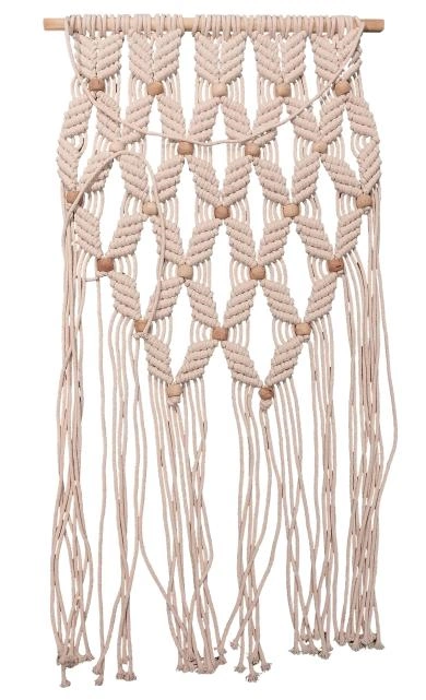 Piękna, dekoracyjna makrama wykonana z bawełny, zawieszona na drewnianym drążku doskonale dopełni wnętrze w stylu boho, skandynawskim czy klasycznym, wprowadzając do pomieszczenia niepowtarzalny nastrój. Wyjątkowy wzór, dobrej jakości sznurek oraz modny kolor podkreślają jej niezwykły urok. Idealnie sprawdzi się jako ozdoba ścienna czy zasłona okienna.
