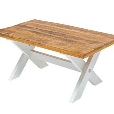 Stolik to połączenie elegancji, funkcjonalności i naturalnego uroku. Białe nogi wspaniale kontrastują z naturalnym kolorem blatu, nadając mu lekkości i nowoczesności. Jego minimalistyczny design idealnie współgra z różnorodnymi aranżacjami dodając subtelnego uroku. Niekwestionowanym atutem jest stabilna, drewniana konstrukcja.