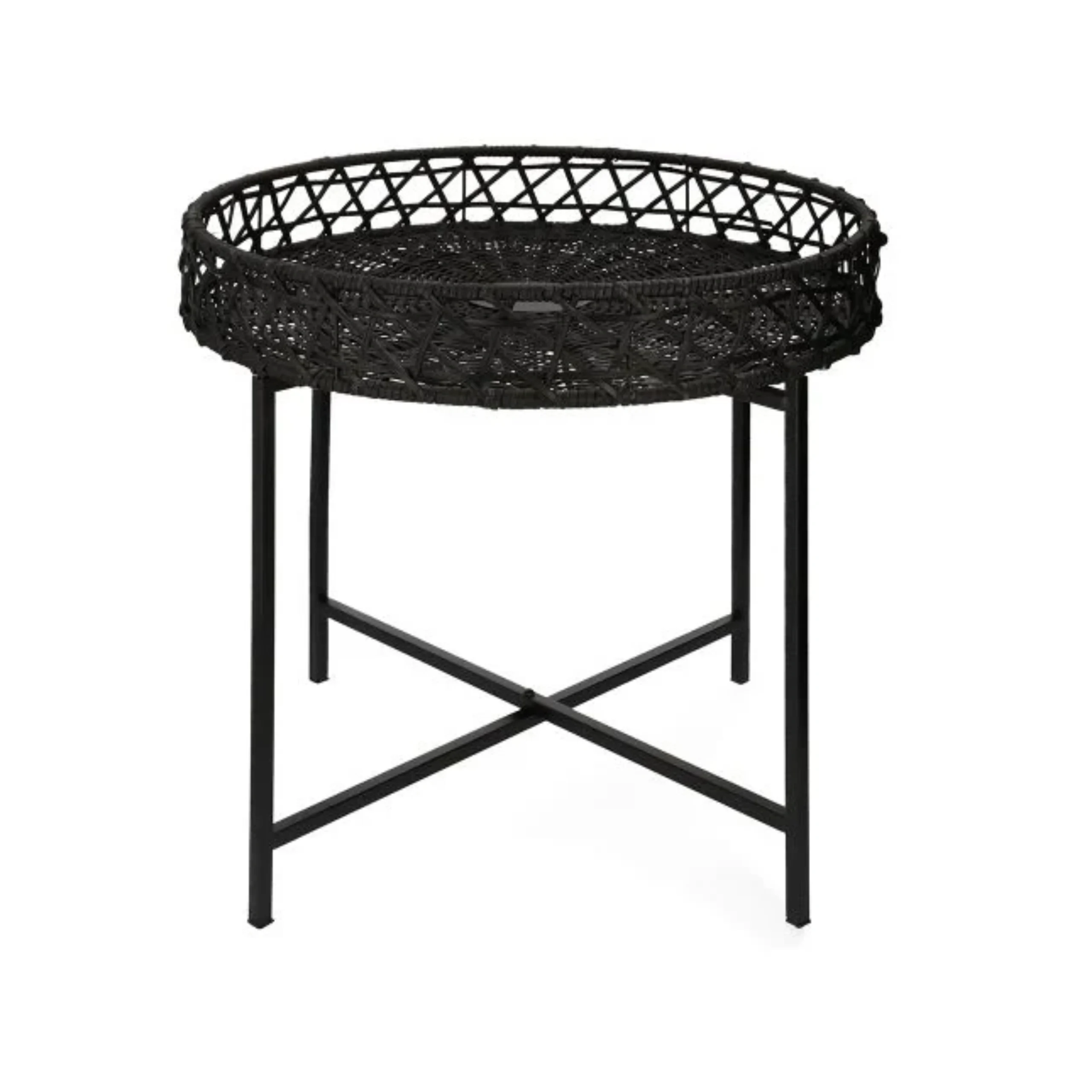Elegancka konstrukcja kompaktowych rozmiarów stolika doskonale sprawdzi się w nowoczesnej stylistyce jak i boho. Uroczy, ratanowy blat z uniesionymi brzegami dodaje lekkości i wyrafinowanego smaku otoczeniu, natomiast metalowe, składane nogi gwarantują stabilność.