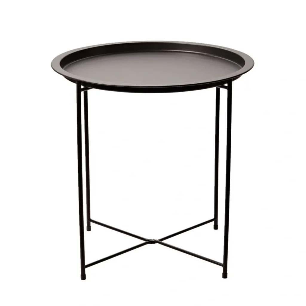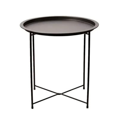 Urokliwy stolik kompaktowych rozmiarów świetnie sprawdzi się w małych przestrzeniach. Funkcjonalność gwarantują zdejmowany blat z uniesionymi brzegami i składane nogi, a metalowa konstrukcja wpisze się w loftowe i nowoczesne wnętrza.