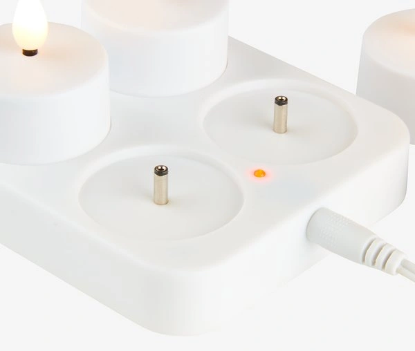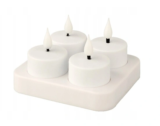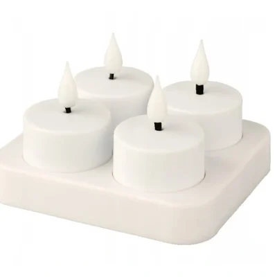 Elegancki komplet podgrzewaczy LED (4 podgrzewacze oraz ładowarka USB) to idealne rozwiązanie, by nadać wnętrzu nastrojowej atmosfery. Imituje tradycyjną, palącą się świecę. Jej płomień do złudzenia przypomina naturalny. Emituje biały, ciepły odcień światła. Świetnie sprawdzi się jako dekoracja domu lub ogrodu, idealna do lampionów. Dodatkowym atutem jest łatwe ładowanie dzięki stacji ładująca USB.