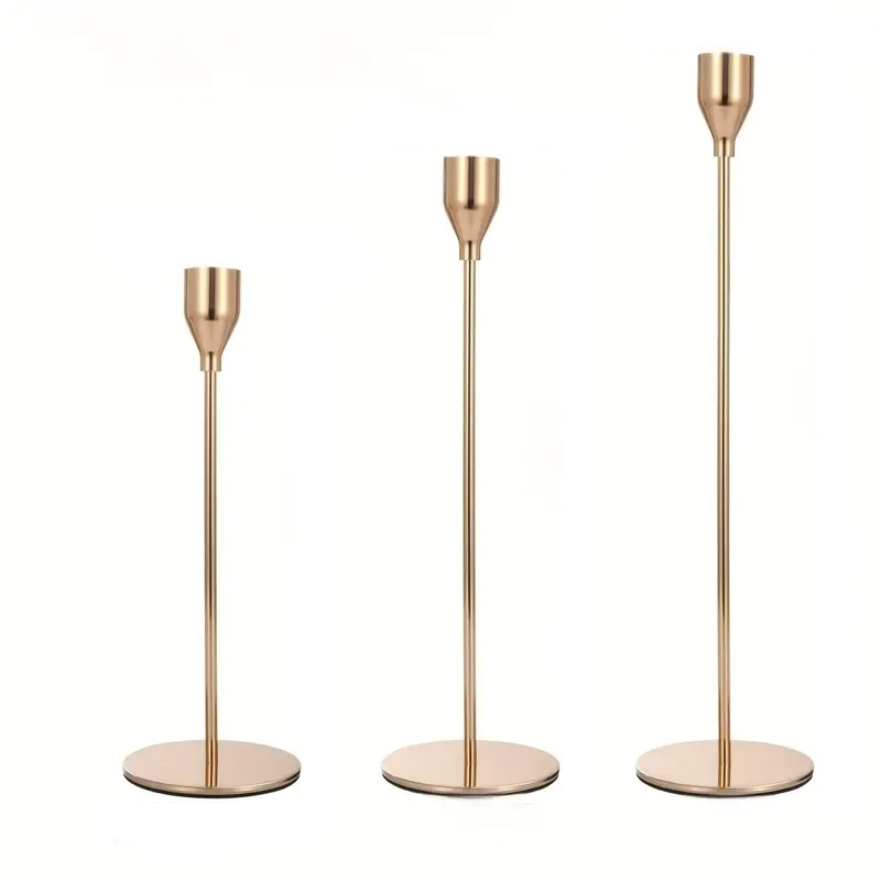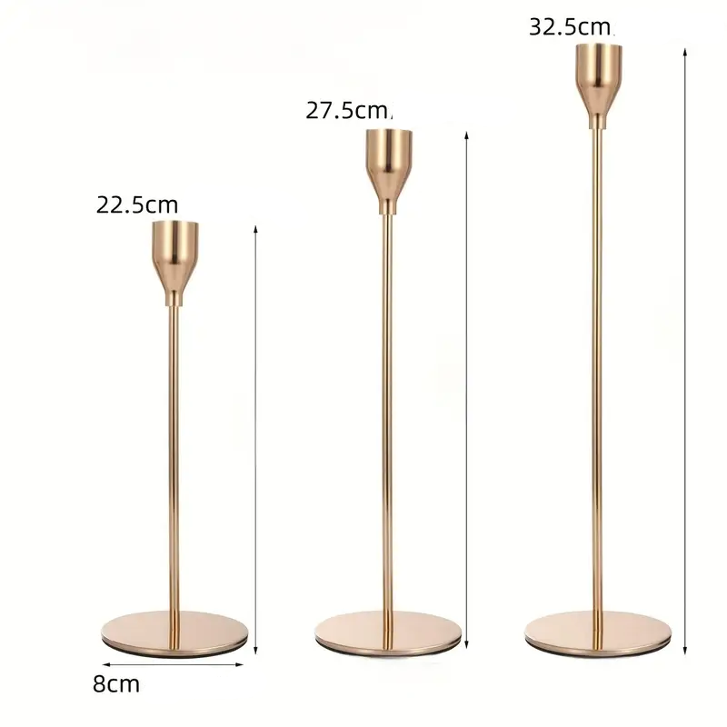 Świecznik to elegancka dekoracja w nowoczesnym stylu, dostępny w trzech wysokościach, idealny do aranżacji stołów i przestrzeni eventowych. Wykonany z metalu w satynowym złotym wykończeniu, doskonale wpisuje się w styl glamour, modern oraz klasyczny. Świetnie prezentuje się zarówno solo, jak i w zestawie tworząc efektowną kompozycję świetlną.